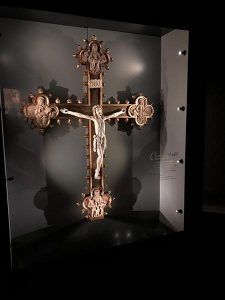 Junto con estos dos objetivos, la reforma ha permitido también redistribuir los contenidos del Museo presentes en la planta baja, para dotarlos de una nueva coherencia en consonancia con los nuevos espacios creados. En este sentido, ha sido importante el proceso seguido para diseñar una zona específica para el Santísimo Cristo de Marfil, has ahora ubicado a la entrada de la parte expositiva permanente de la planta baja y que, con la reforma, pasa a contar con un espacio propio – la antigua sala de proyecciones – que remarca la importancia de la pieza en la Semana Santa de Cuenca, tanto por su antigüedad (recordemos que se trata de la imagen más antigua de cuantas desfilan en las procesiones de la Pasión conquense) como por su valor artístico. El Santísimo Cristo de Marfil “se ubica en una vitrina especial” y se ha mejorado la iluminación de la pieza. Junto a la misma, se dota de contenido a la sala “con los cuatro interactivos existentes”.