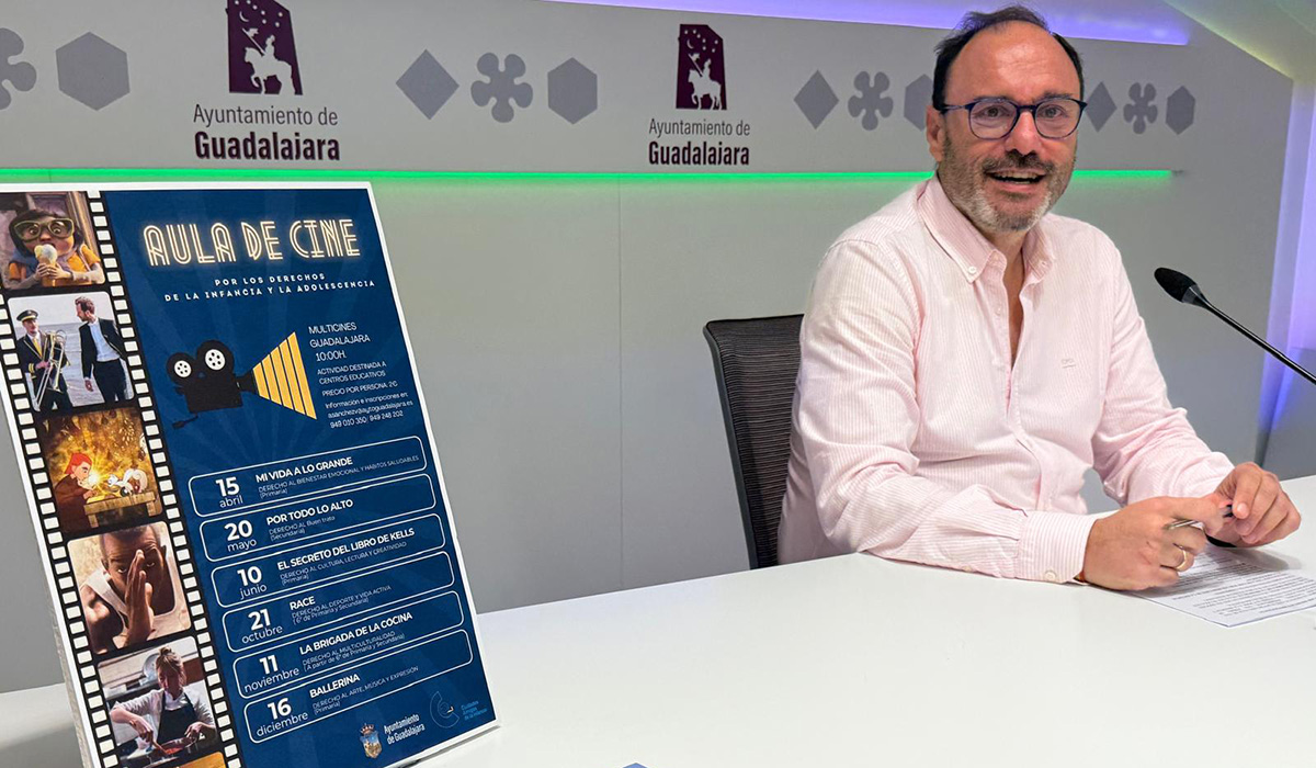 El concejal de Infancia, Roberto Narro, ha presentado esta mañana el nuevo proyecto municipal “Aula de Cine por los Derechos de la Infancia y la Adolescencia”, una iniciativa educativa y cultural que “va mucho más allá de una programación de cine” y que reafirma el compromiso del Ayuntamiento de Guadalajara con las políticas de protección, participación y bienestar de niños y adolescentes.