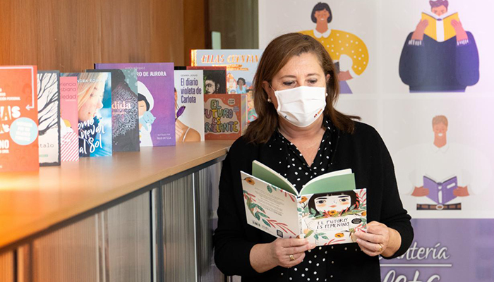 La consejera ha explicado que con estos libros se pondrá en marcha en cada una de estas bibliotecas una ‘Estantería Violeta Juvenil’ que servirá de complemento a la ‘Estantería Violeta’ con la que ya cuentan, y que se inició en marzo de 2020.