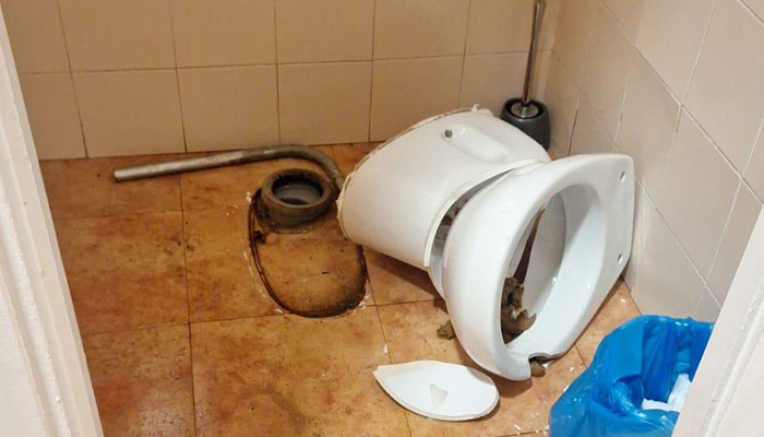 Así ha quedado un baño de la calle Severo Catalina esde Domingo de Ramos. Desde el Ayuntamiento de Cuenca consideran que «es inaceptable que se abran recursos públicos que son de toda la ciudadanía para que desalmados se dediquen a hacer actos vandálicos que supondrán un desembolso económico para su arreglo que sale del bolsillo de los conquenses. Así no».
