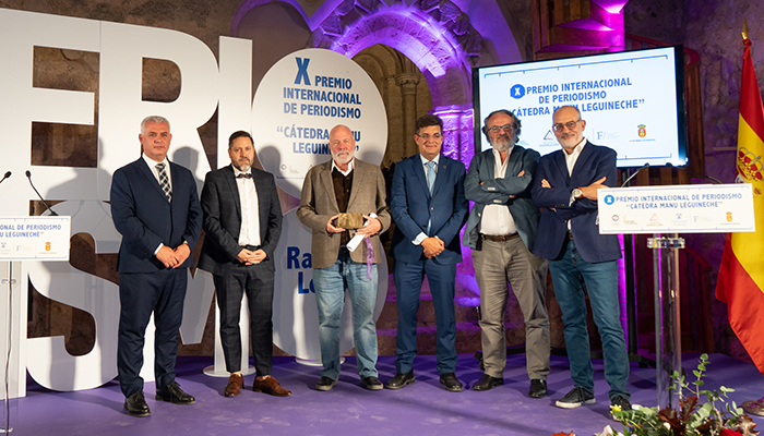 En una ceremonia celebrada en el Castillo de la Piedra Bermeja de Brihuega, Ramón Lobo ha recogido el X premio “Cátedra Manu Leguineche”, en reconocimiento a sus más de 45 años de trayectoria profesional, desarrollada desde la independencia, el rigor, el respeto a la verdad y la defensa de la libertad de información. El encargado de pronunciar la laudatio sobre los merecimientos de Ramón Lobo ha sido el también periodista y ganador de este mismo premio en su séptima edición, José Antonio Guardiola.