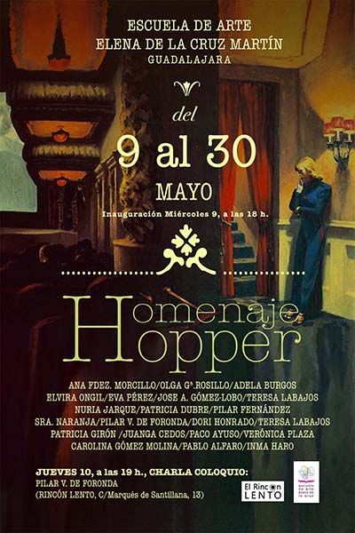 El próximo miércoles 9 de mayo a las 18:00h, la sala de exposiciones de la Escuela de Arte “Elena de la Cruz” de Guadalajara acoge una muestra que lleva por título Homenaje a Hopper.