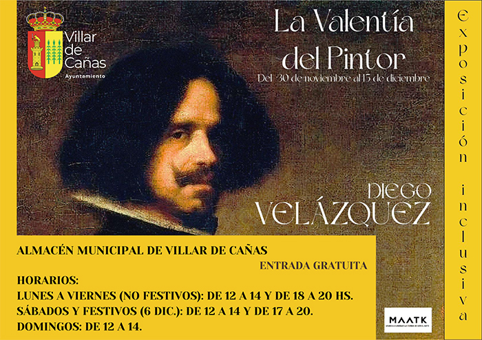 Desde el próximo sábado, 30 de noviembre y hasta el 15 de diciembre, Villar de Cañas acoge la muestra inclusiva sobre el pintor sevillano “Velázquez: La valentía del pintor”, a cargo de MAATK INCLUSIÓN, unos valencianos con raíces conquenses.