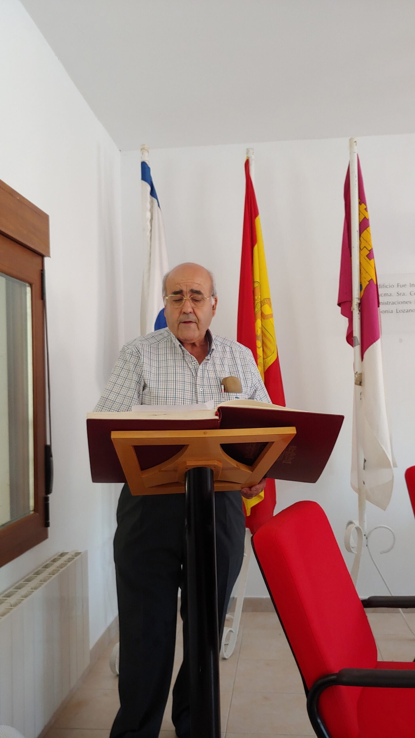 Pasaban algunos minutos de la una de la tarde cuando hacía su aparición, en el Salón de Plenos del Ayuntamiento de Chillarón de Cuenca, la secretaria que, además de dirigir el acto, firmaría el acta protocolaria de toma de posesión de Alcalde y Concejales quienes, menos el cabeza de lista por el PP, Victor Manuel Carballo, ausente, jurarían su cargo leyendo el texto de rigor colocado, previamente, en la primera página del libro de la Constitución sobre un atril a la izquierda de la mesa de plenos.