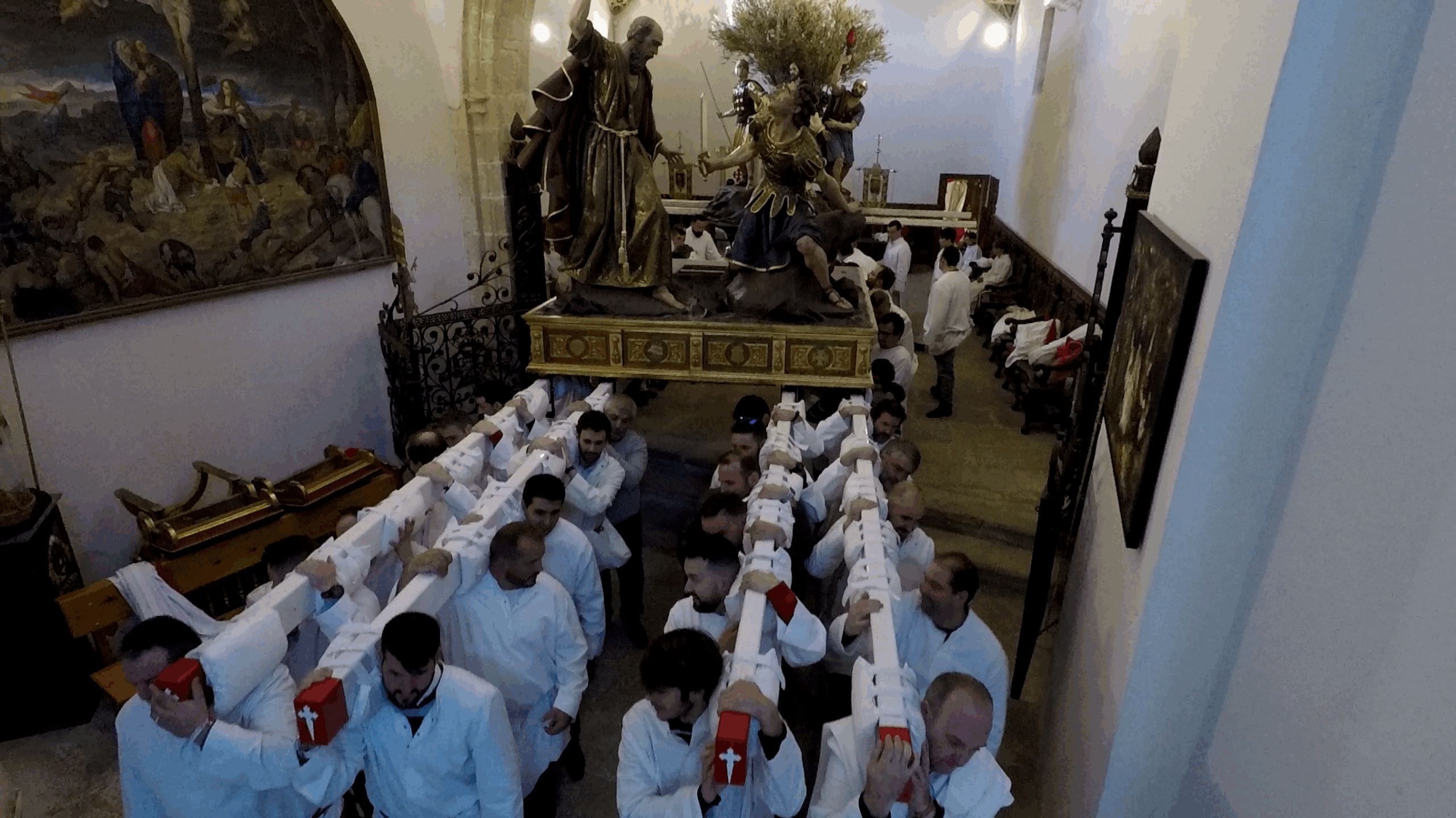 Este grupo escultórico de San Pedro Apóstol, que vemos en su capilla de la iglesia de San Pedro poco antes de su salida a la placeta, consta de 5 imágenes de tamaño natural que representa al prendimiento del Señor en Getmsemani-