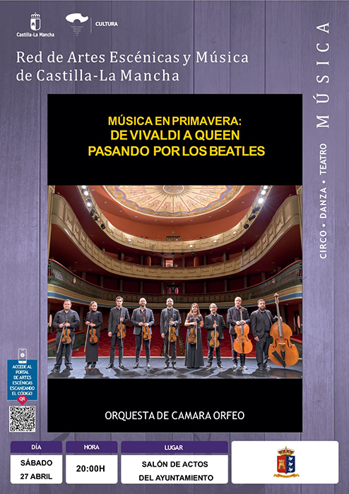 ‘Música en primavera: de Vivaldi a Queen pasando por los Beatles’ correrá a cargo de la Orquesta de Cámara Orfeo. La formación, con sede en Ciudad Real, está compuesta por profesores de diferentes conservatorios y orquestas del país. Fue fundada en 1995 por Manuel Briega, su actual concertino-director. Desde su fundación ha realizado conciertos dentro y fuera de nuestra geografía.
