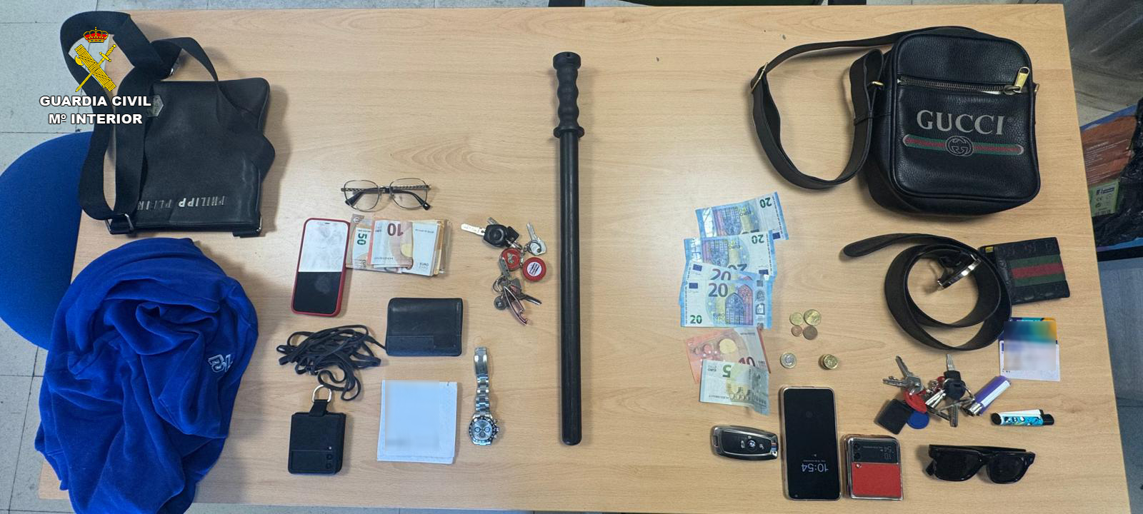 Como resultado del registro practicado en el turismo, se localizó una defensa semirrígida (similar a las utilizadas por la Fuerzas y Cuerpos de Seguridad del Estado) con la que habrían golpeado a la víctima, así como más de 2.000 euros en efectivo, teléfonos móviles y otros efectos. La Guardia Civil instruyó diligencias por la detención de dos varones, de nacionalidad española, de 29 y 42 años, como presuntos autores de los delitos de detención ilegal y otro de lesiones, que fueron entregadas junto con los detenidos ayer miércoles, en el juzgado de instrucción en funciones de guardia de los de Guadalajara.