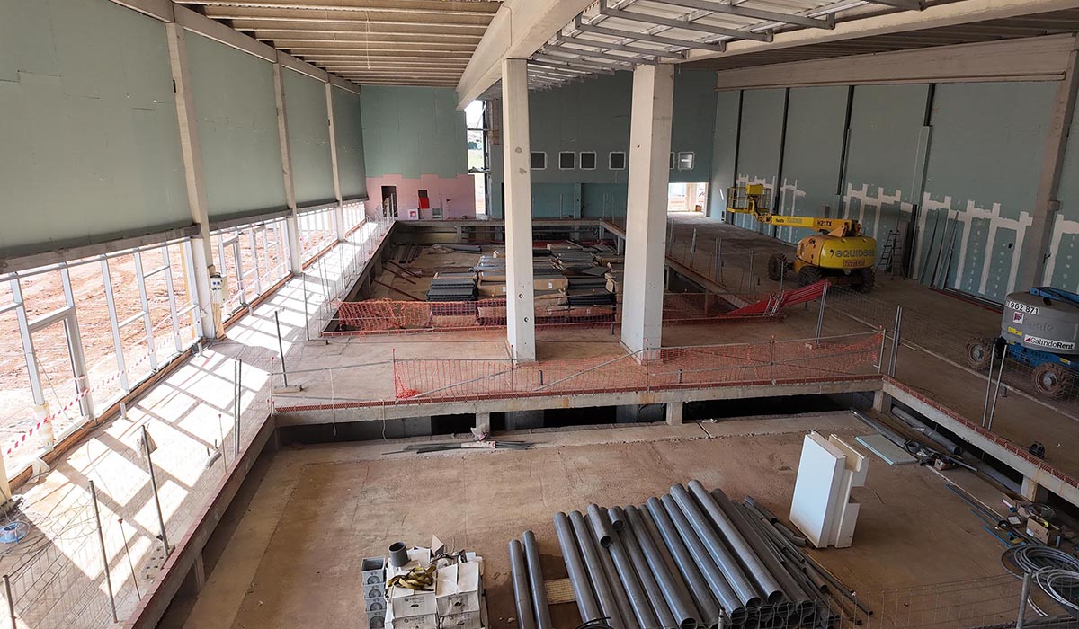 Los responsables municipales pudieron comprobar in situ la marcha de unas obras que han alcanzado el 65% de su fase constructiva, y que se espera que puedan estar finalizadas en las últimas semanas del presente año 2026, o al inicio de 2027. Toda la obra estructural del edificio está ya levantada, y ya son visibles las distintas zonas que conforman la instalación: Vestíbulo de entrada, los distintos vestuarios, zona central de las dos piscinas climatizadas, salas de usos polivalentes, las dos piscinas exteriores, o el área de merendero que dará servicio a estas últimas, entre otras.