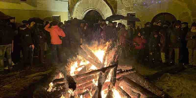 Anoche se prendió la hoguera, bajo la lluvia y la nieve, en la Plazuela de San Vicente, junto a la Casa del Doncel, mientras que hoy se celebra misa y procesión en honor del Santo, oficiada por el obispo de la diócesis, Atilano Rodríguez.