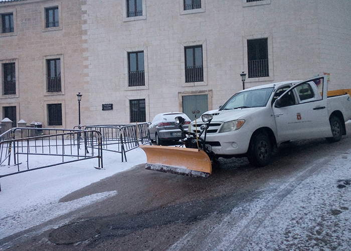 Voluntarios de Protección Civil de Cuenca se han movilizado y colaboran con el Plan de Vialidad Invernal este sábado para dejar las principales calles de Cuenca limpias y transitables.