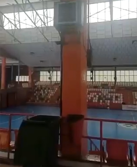 La lluvia torrencial caída a mediodía en Cuenca, contabilizándose 16 litros por metro cuadrado en menos de una hora, ha hecho rebosar las bajantes de El Sargal, provocando la entrada de agua en uno de los laterales del pabellón. No se trata por tanto de goteras ni de problemas en la cubierta sobre la pista central, que es la que se reparó recientemente. De hecho, cuando las lluvias han reducido su intensidad y las bajantes han podido canalizar el agua ésta no ha vuelto a entrar en el pabellón.