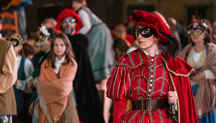 La representación del Tenorio Mendocino regresó anoche a las calles de Guadalajara con una gran afluencia de público en todas las escenas que recorrieron los principales monumentos de Guadalajara, para ganar la apuesta con Don Luis Mejía y ganarse el amor de Dª Inés.