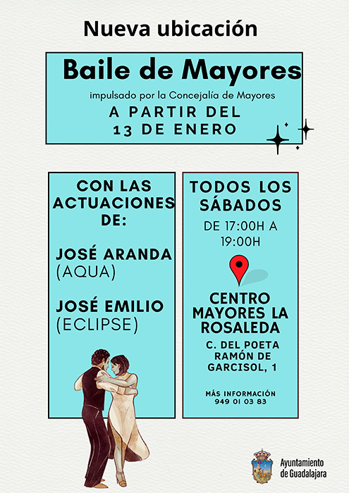 Vuelven los bailes de mayores, con cambio de ubicación, serán en el Centro de Mayores de la RosaledaLos bailes de mayores vuelven a retomar su actividad este sábado día 13 de enero pero lo harán en el Centro de Mayores de la Rosaleda, en la calle Poeta Ramon de  Garciasol, 1 en horario de 17:00h a 19:00h.