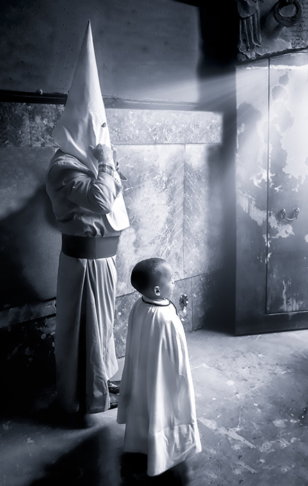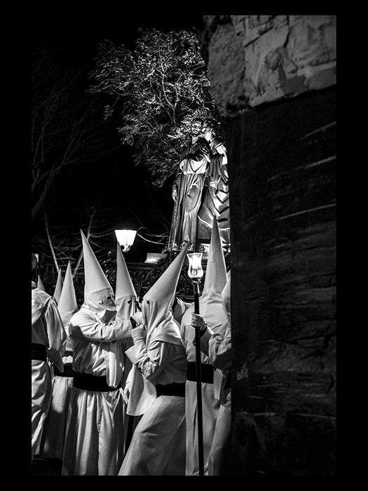 Una instantánea íntima del Beso de Judas a punto de dar la primera curva del Peso, en blanco y negro, es la imagen que le ha valido a David Saiz Olivares para hacerse con el Primer Premio en la XXII edición del Concurso Fotográfico “Semana Santa de Cuenca”, convocado por la Asociación Cultural “Soledad del Puente”, dependiente de la Venerable Hermandad homónima.