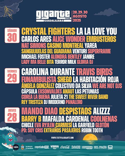 El festival Gigante se celebrará los días 28, 29 y 30 de agosto de 2025. La distribución de artistas por día es la siguiente: